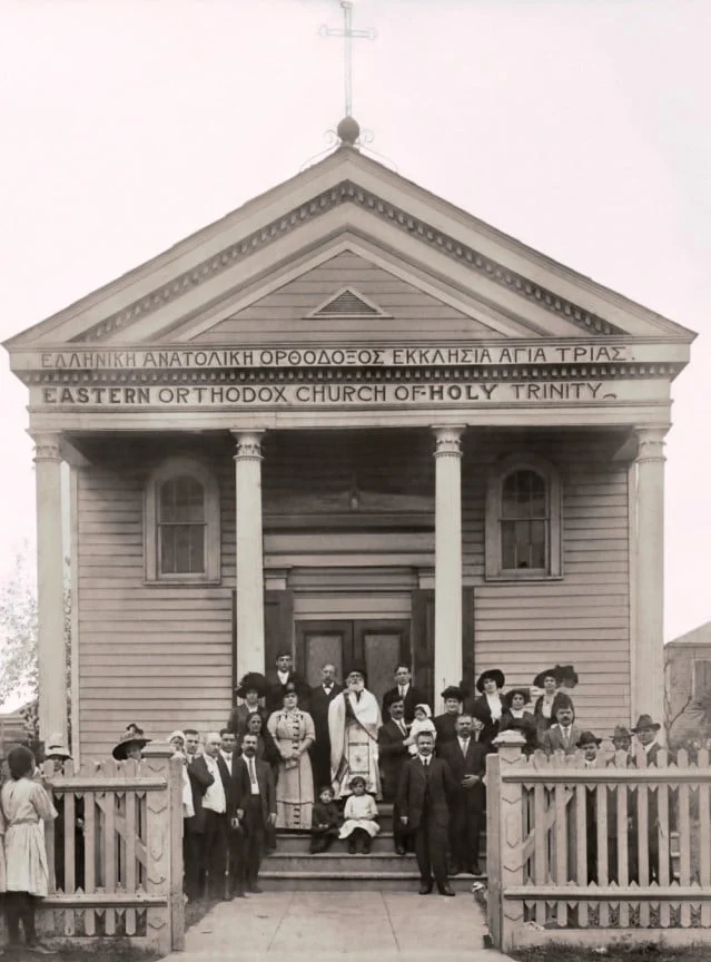 The original church was wooden, with Greek columns and a simple roof. Its form closely resembled the local churches of the American South. Although small, it was the epicenter of a community with a Greek soul and cosmopolitan character.