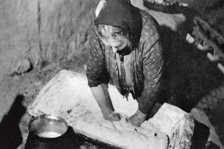 On New Year's Eve, housewives would make “vasilopita”. They would sprinkle the flour with spices and knead it to make “vasilopita”. They would roll out six sheets of dough and add the herbs. Sometimes they would place fillings of their choice between the sheets, usually meat and rice, while on the basilopita they would make symbolic shapes from a branch. And of course they would put the “flouri” inside.