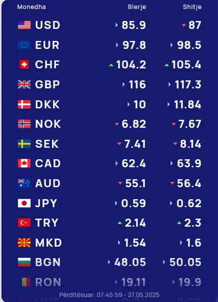 Το ευρώ κυμαίνεται στα 97,8 λεκ για την αγορά και 98,5 λεκ για την πώληση.